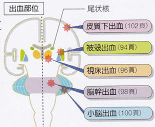 (4)脳出血の好発部位とその症状