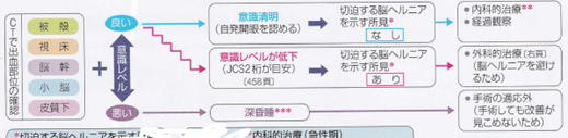 また必要に応じ、浸透圧性利尿薬や、ステロイド薬などで頭蓋内圧亢進症状を軽減させます。