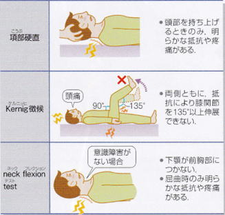 出血や感染などで髄膜が刺激された時に出現する症状の総称です。