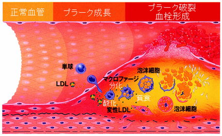 動脈血管内の蓄積物(コレステロール、カルシウム、血中のマクロファージ 、リンパ球)です。