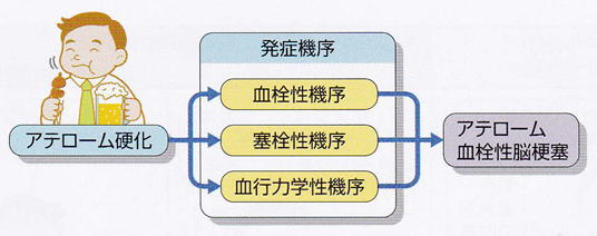 脳血管にアテローム性の動脈硬化が生じて発症する脳梗塞です。