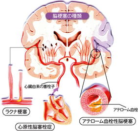 心房細動や弁膜症などが原因で心臓内に血栓が生じ、それがはがれて脳血管に詰まる場合です。