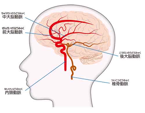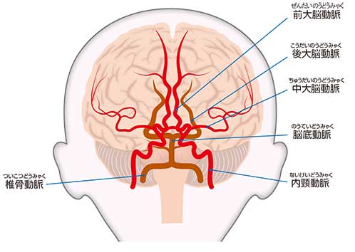 椎骨動脈、脳底動脈、後下小脳動脈、前下小脳動脈、上小脳動脈、後大脳動脈などが含まれます。