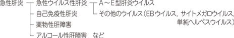EBウイルス、サイトメガロウイルス、ヘルペスウイルスなどによるウイルス肝炎です。