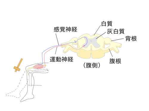 太い骨格筋につながる腱を筋が弛緩した状態で軽くハンマーで叩くと、一瞬遅れて筋が不随意に収縮する反射です。