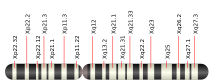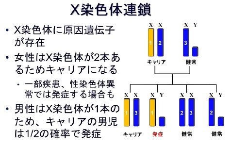 X染色体上にある遺伝子の変化によって発症する疾患です。