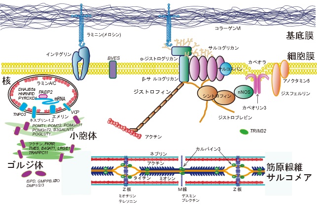 その欠損・変異は、細胞内シグナル伝達系の異常をもたらし、不可逆的な筋繊維壊死・筋力低下・疲労などの症状を