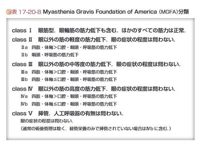 米国重症筋無力症財団(Myasthenia Gravis Foundation of America:MGFA)分類が汎用されます。