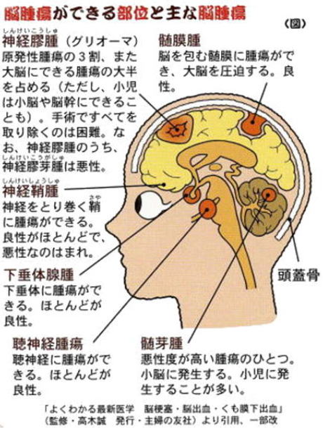 神経膠腫 神経鞘腫 髄膜腫 下垂体腺腫 聴神経腫瘍 髄芽腫 転移性腫瘍