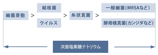 ノロウイルス、インフルエンザウイルス、サルモネラ菌、チフス菌、大腸菌などに有効です。