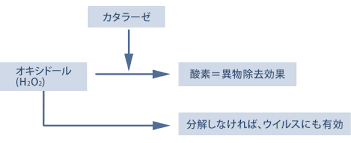 過酸化水素は粘膜や血液に存在するカタラーゼにより分解されるため、創傷・潰瘍部位において殺菌作用を