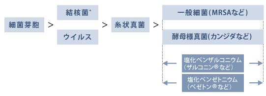 結核菌、ウイルス、真菌、一般細菌、酵母様真菌および腟トリコモナスなどに効力を示します。