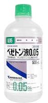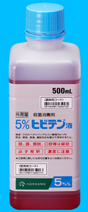 ポリビニルピロリドンとヨウ素の複合体であり、10%程度の水溶液にし、外用消毒薬として用います。