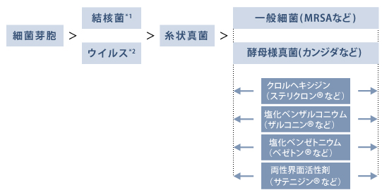 アルコールは一般細菌を10秒間で殺滅できるなど短時間で効力を発現します。