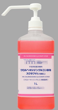 患者の生体消毒用として各種濃度のクロルヘキシジン水溶液、0.5%クロルヘキシジンアルコールがあります。