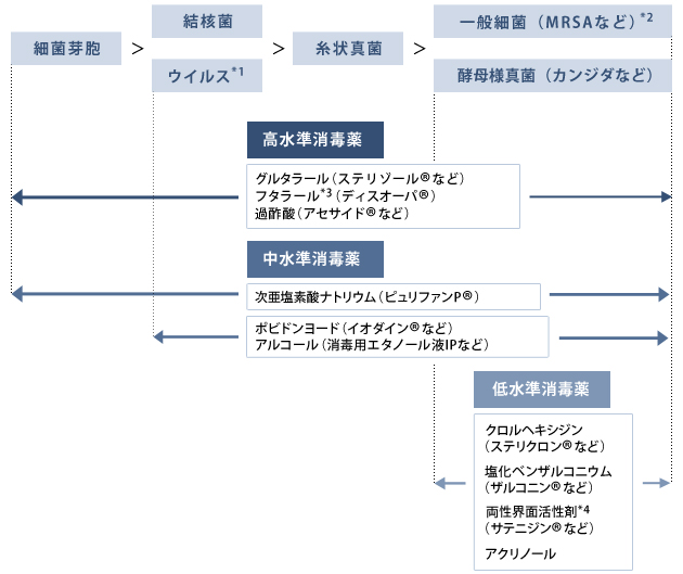 また、人体に使用するのか、器材に使用するのかでも使い分けが必要となります。