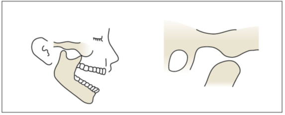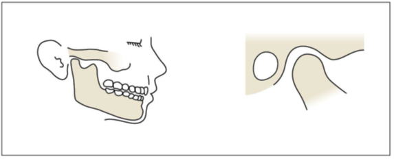 正常では、関節頭は下顎窩の中に収まっています