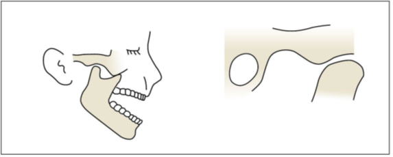 頬骨の下に下顎頭が突出するため顔貌が変化します。