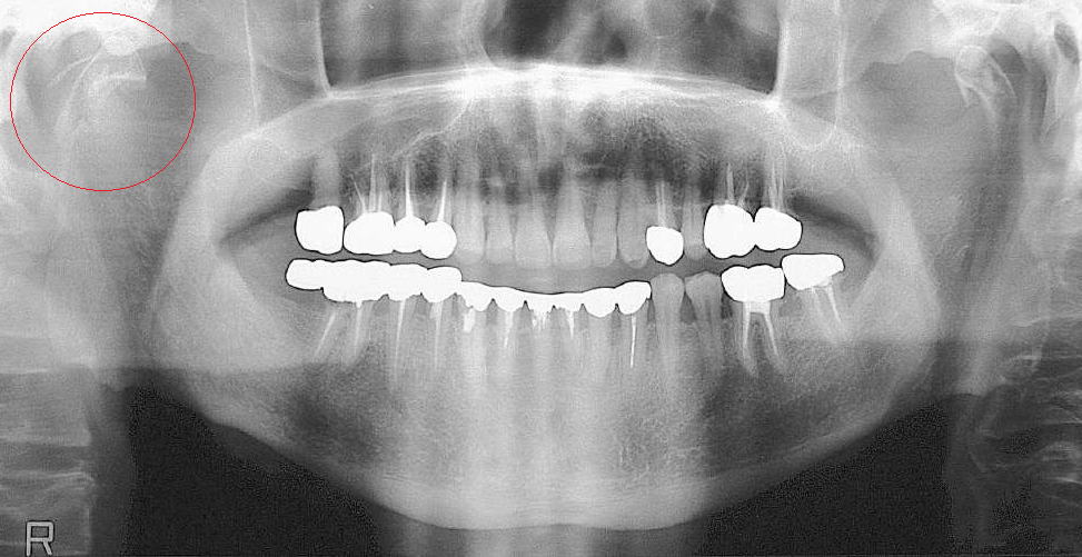 顎関節部外傷で最も一般的にみられるのは、下顎頭、関節突起の骨折です。
