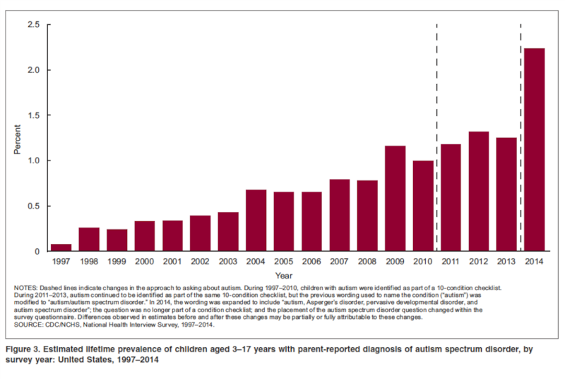 米国国立衛生研究所(National Institutes of Health: NIH)の3歳から17歳のASDの有病率