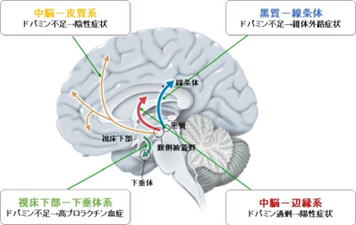 中脳皮質系―ドパミン不足−陰性症状の出現