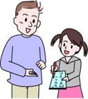 子どもが絵カードを取って、正面の人の掌にその絵カードを渡すことを教えます。