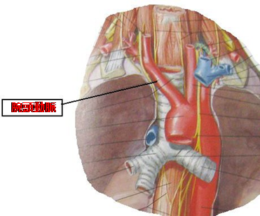 大動脈弓から最初に分枝し、右の胸鎖関節の後ろで右腕への右鎖骨下動脈と、頭への右総頚動脈に2分枝するまでの