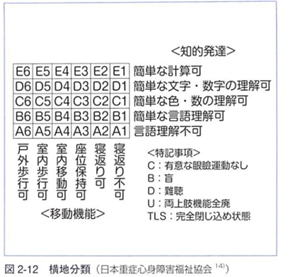 大島分類の分類の項目数を増やし、具体性を持たせることにより、障害区分の枠組みを明確にしたものです。