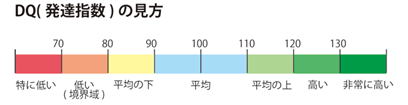判定基準(新版K式の場合): 正常80〜120、境界域70〜79、遅滞69以下