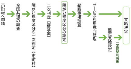 市町村へ申請し障害支援区分に応じた支援を受けます。