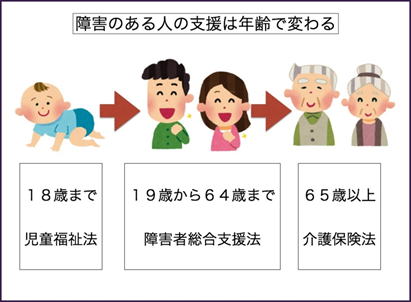 障害のある人の医療と福祉を支える法制度を整備する事によって上記の理念が現実化されます。
