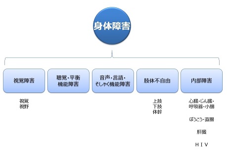 詳細は、「視覚障害」、「聴覚障害」、「音声・言語障害」、「内部障害」へ