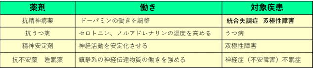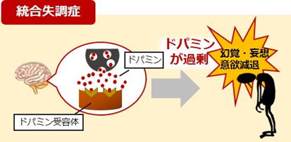 抗精神病薬などによって、脳内の生体内活性物質を調整します。