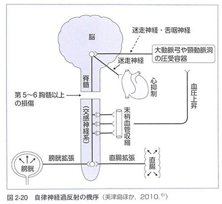 高位脊髄損傷では、交感神経は分断されますが、迷走神経機能は残存するために副交感神経優位となります。