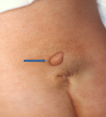出生時に背部〜おしりにかけて皮膚が欠損し脊髄が見えているため、肉眼的にすぐに診断が可能です。