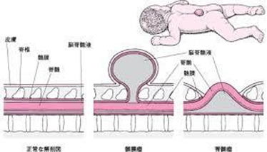 上部に生じた場合---------無脳症(無脳症の場合は流産もしくは死産)