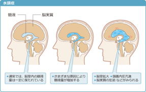 脳室に髄液が過剰に溜まってしまったために脳を圧迫し、さまざまな症状を引き起こしてしまう疾患です。