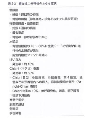 すでに胎内にいる時から下肢の運動麻痺、感覚麻痺、膀胱直腸障害をすでに認めている事もあります。