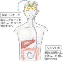 脳室ドレナージか皮下にリザーバーを留置し、髄液がきれいになってからシャント手術を行います。