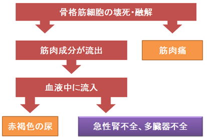 骨格筋を構成する横紋筋細胞が融解し筋細胞内の成分が血中に流出する症状、またはそれを指す病気のこと。