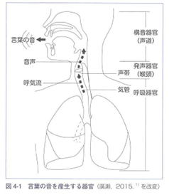 発声・発語器官(唇、顎、舌、鼻からのど、気管・気管支から肺までつながる声を出すための器官)の