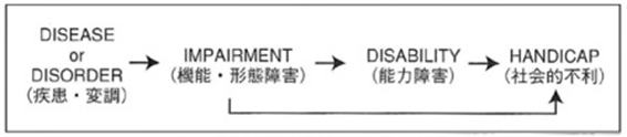 これは、疾病等によって生じた機能障害は、生活上の能力障害(能力低下)や社会的不利を伴うという考え方