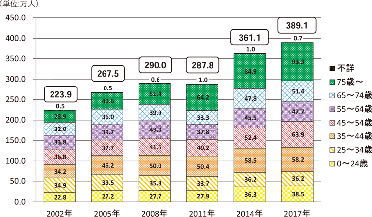 精神障害者:外来患者---厚生労働省「患者調査」(2017年)