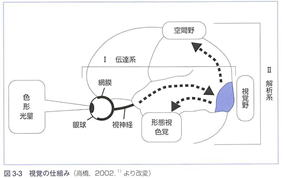 後頭葉の視覚感覚野以降は情報を取り出す解析系となります。