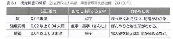 身体障害者福祉法では,視力と視野に障害があるものを視覚障害と定めています。
