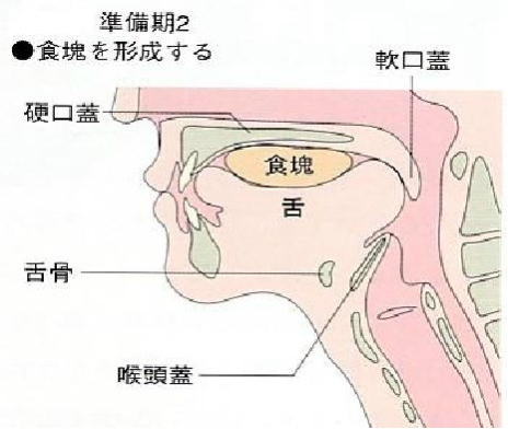 そのまま舌背に乗せられて、食塊形成の段階に移行する。