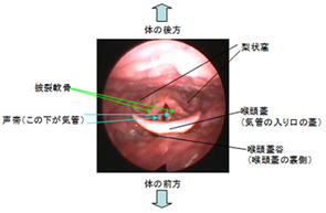 咽喉頭粘膜の状態や声門閉鎖機能、分泌物の貯留・気道への流入の有無を確認できる.