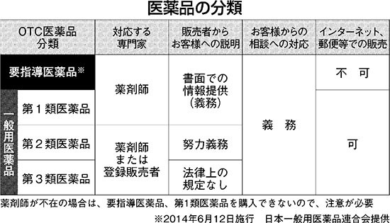 また、薬の分類によって、販売できる専門家や、購入時の薬に関する情報提供の方法も異なります。*