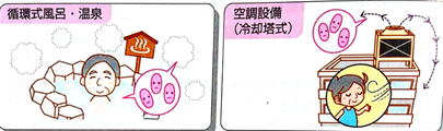 代表的なエアロゾル感染源としては、冷却塔水、加湿器や循環式浴槽などが報告されています。