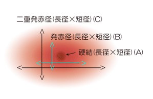 発赤の長径が10mm未満ならば陰性、10mm以上ならば陽性と判定しています。